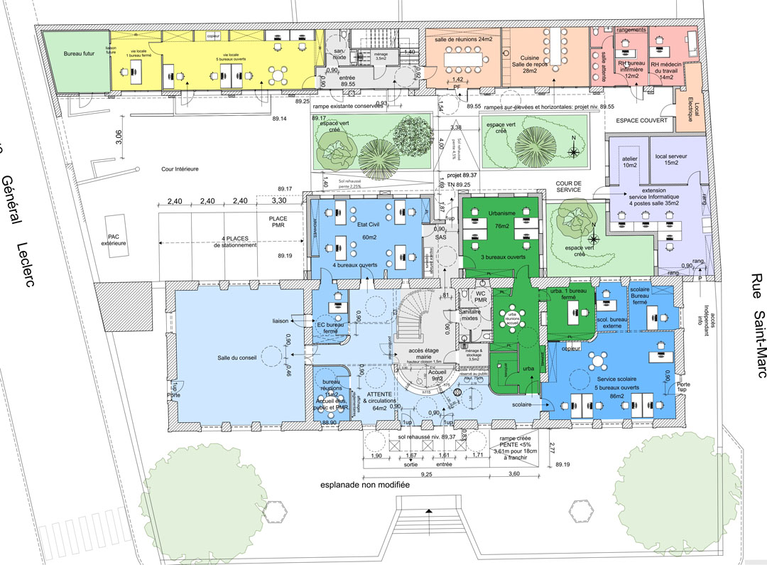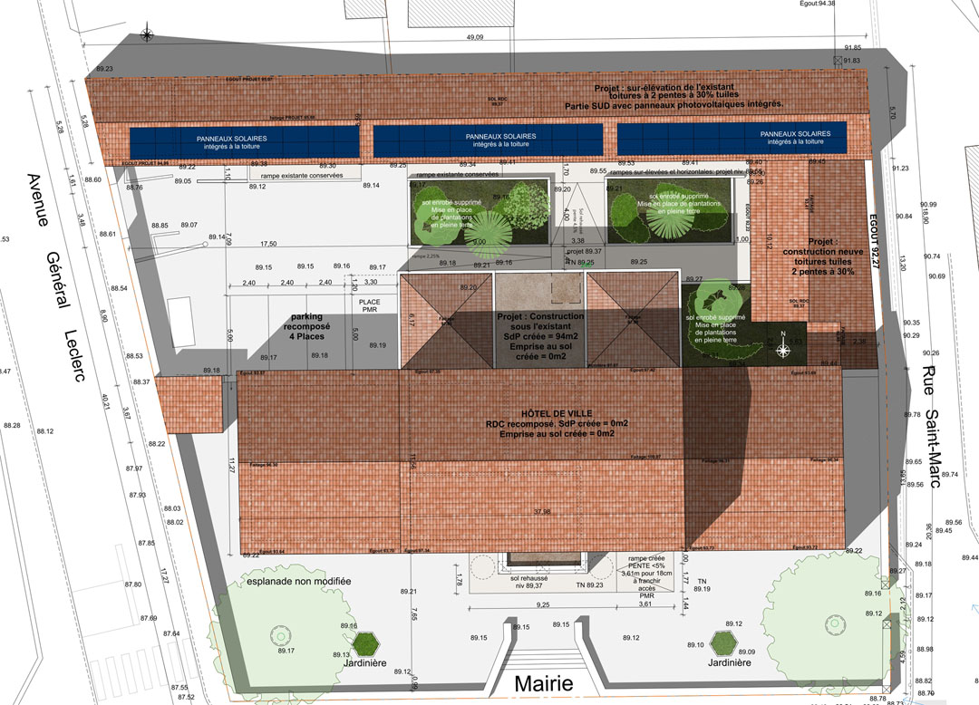 • réaménagement partiel des RDC, et extension des bâtiments en vue de regrouper certains services communaux.
